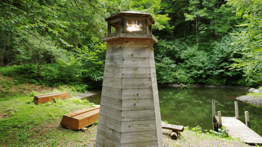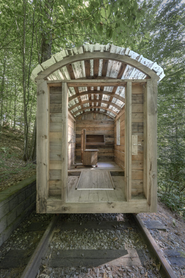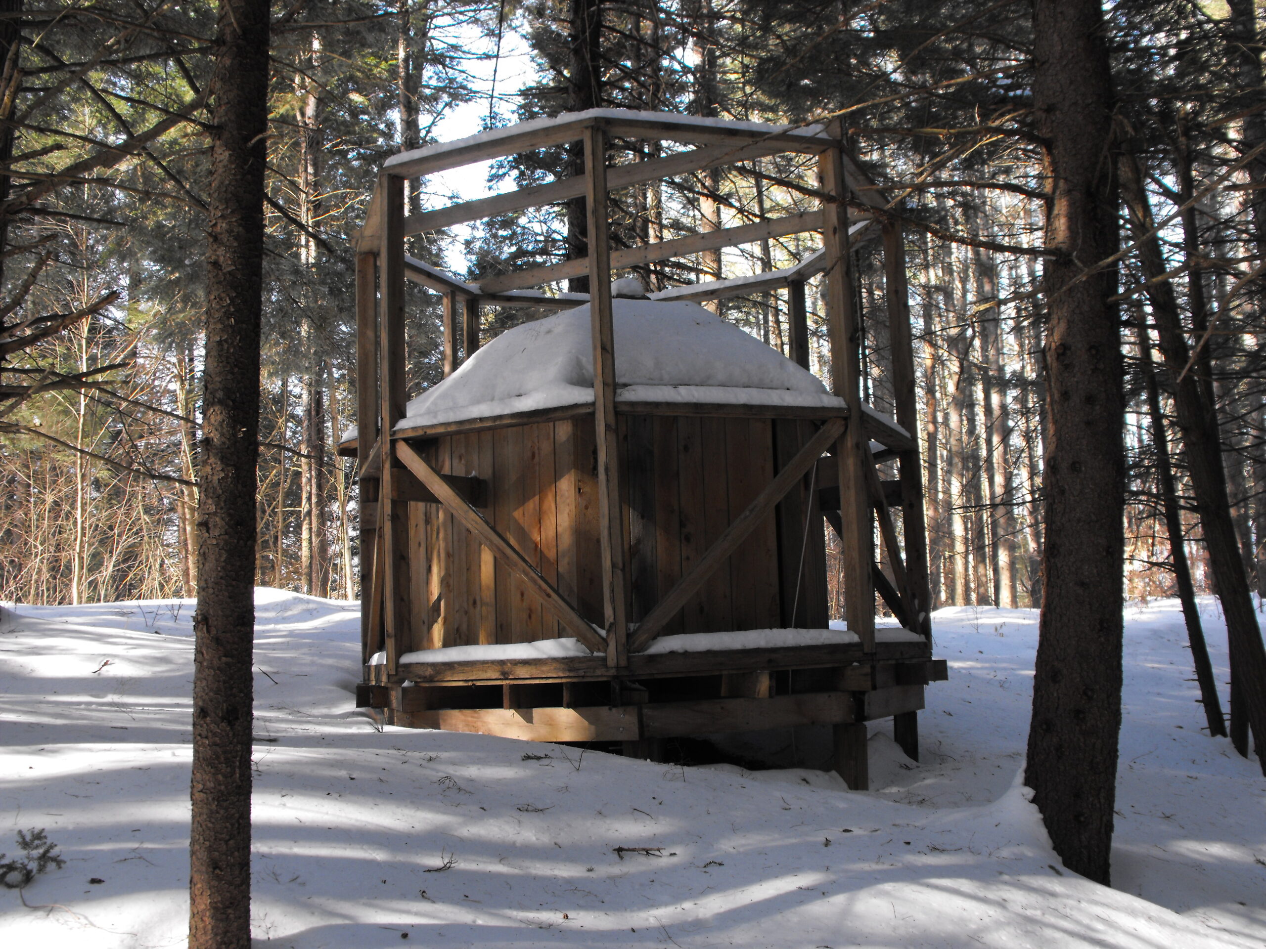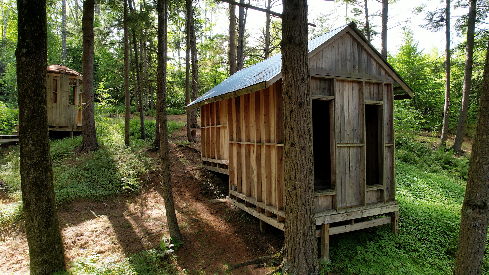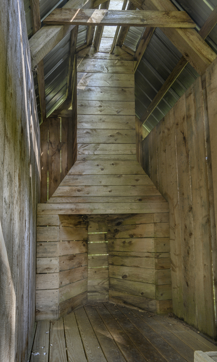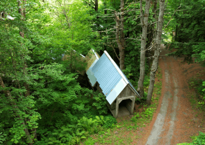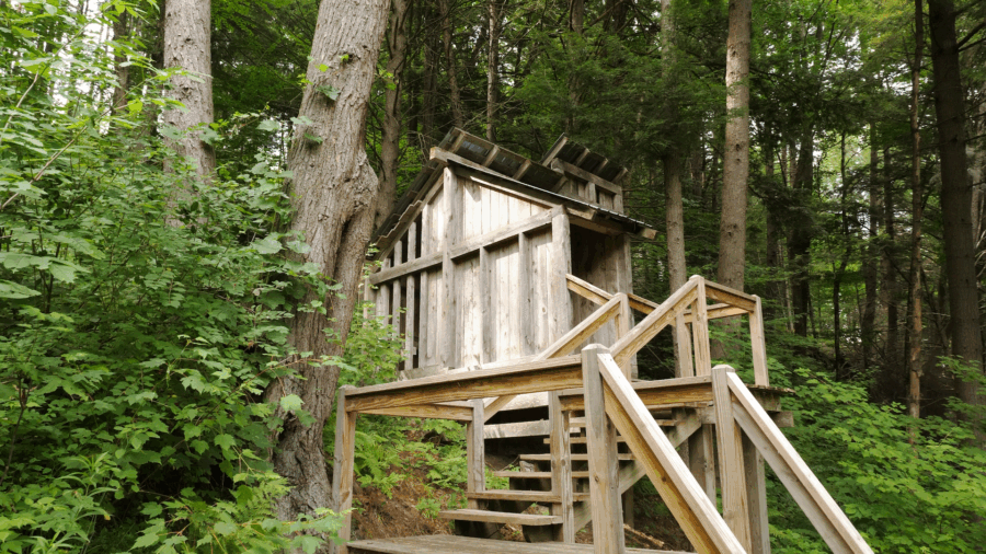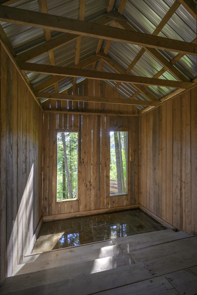 Vermont Village installations were built between the years 1991-2020. Many are activated by water that is gravity fed from a pond with sensors, valves, misters, and sprinklers controlling the flow. Though primarily constructed using hemlock wood sewn from fallen trees, some installations have been restored over time using pressurized wood and galvanized metal. Now, when an installation is rebuilt, moisture-resistant black locust wood is used.